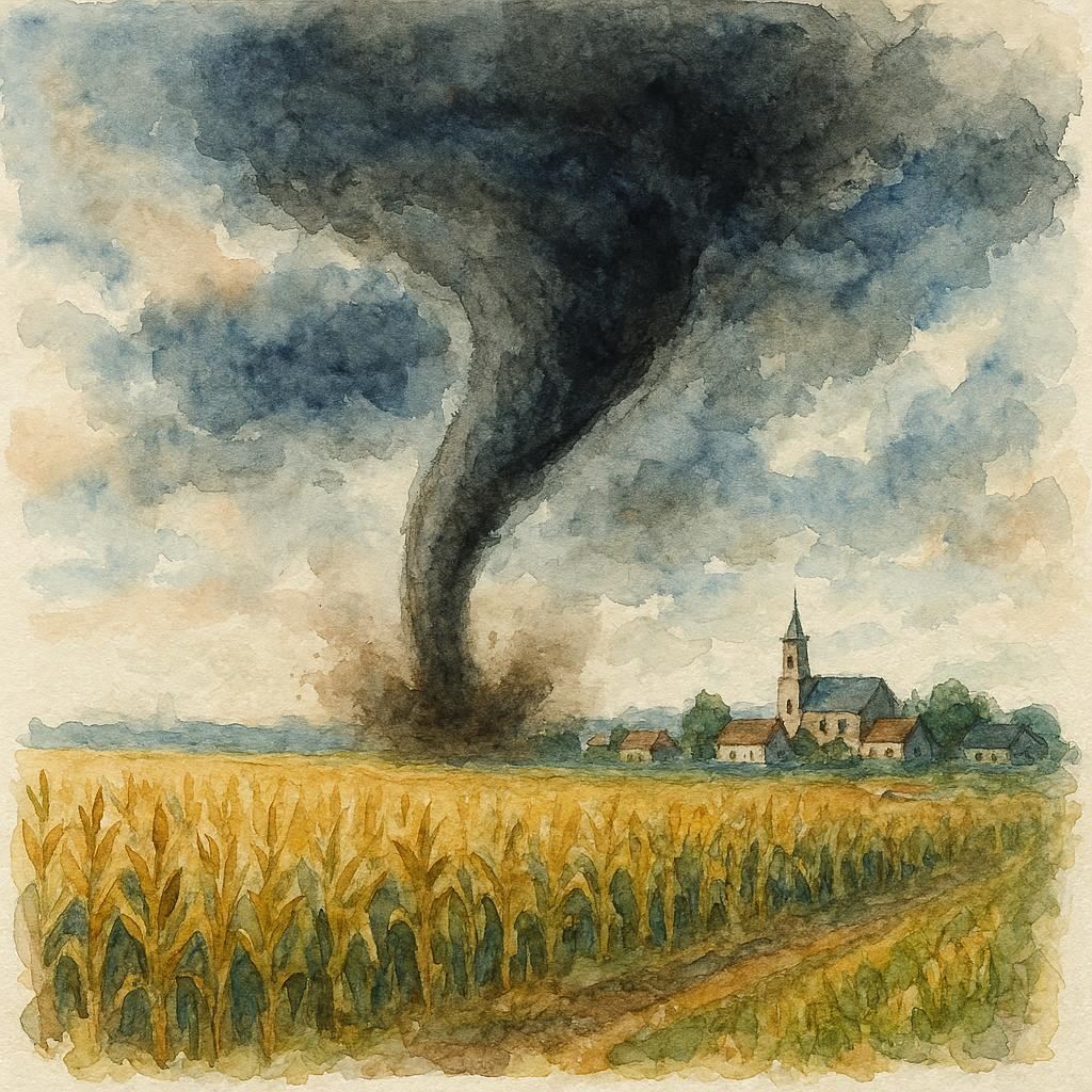 On another note, we’ve had some strong storms here over the last month or two, and they’re expected to continue through the summer. It’s starting to feel almost as serious as the floods of ’93. A couple of nights ago, a tornado warning sent me scrambling—I had to get all four kids out of bed at 12:30 a.m. and across the street to shelter since we don’t have a basement. I made them hold onto each other, onto the dog, and onto me because I was terrified the wind would pick us up at any second. Thank goodness for helpful neighbors. Our house wasn’t damaged, but it easily could have been. A tornado touched down less than a mile away.