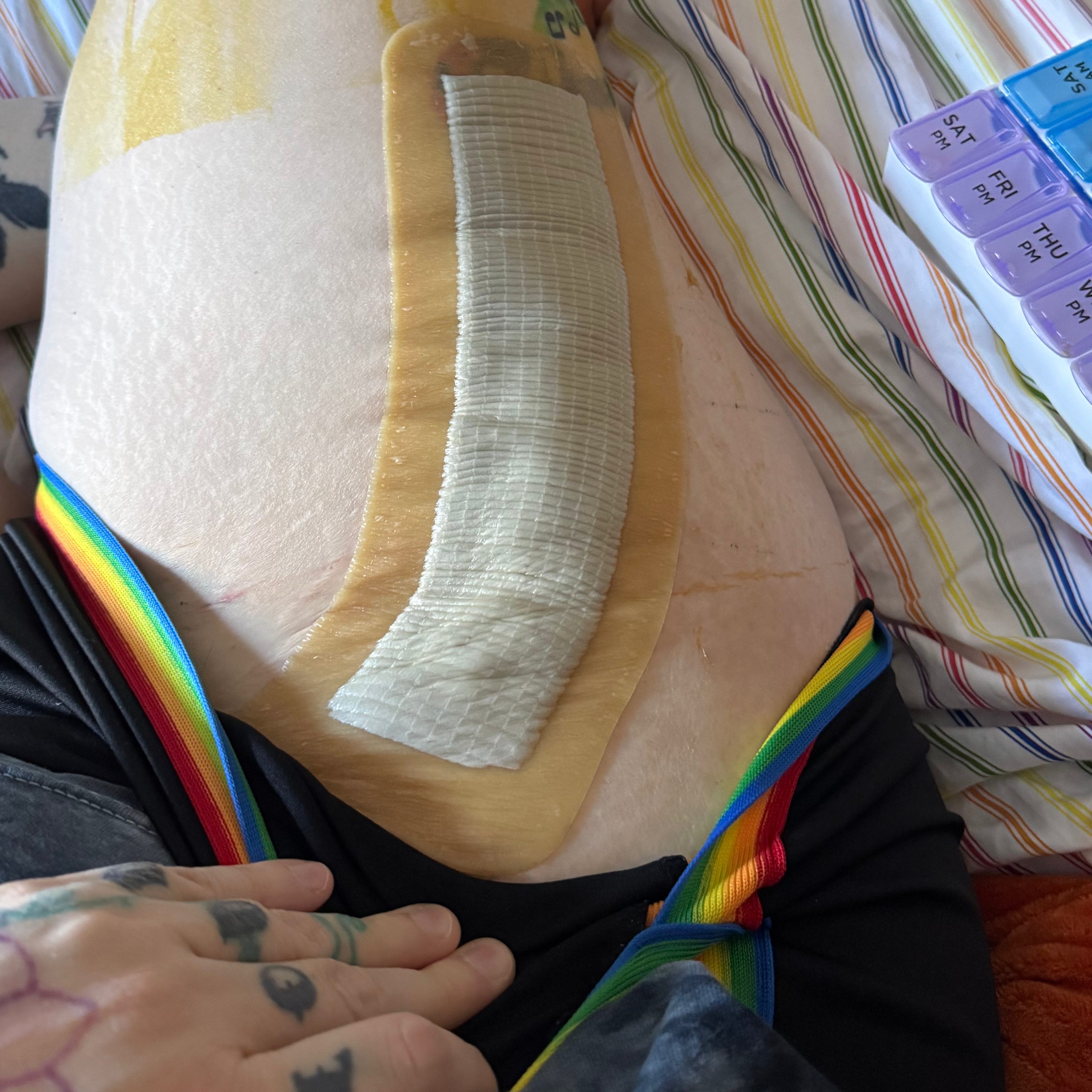 In the second week the pain reduced, and I made the conscious decision to reduce my meds so I wasn’t such a zombie. On day 10, Felix returned home from being at his dad’s. That was challenging, but not impossible. Cass and Liz were still making meals and taking care of our home. But I developed a rash from the operative antiseptic wash that was sticky and wouldn’t scrub off of my skin. The rash was intense, from waist to ankle. It took several days for me to get any sort of answer or relief from the surgical team as to how to combat the itch. Eventually I was told to take Zyrtec and Benadryl (which didn’t work), and then I was prescribed oral steroids, which took nearly the entire 6-day course to work. Finally I was itch-free, and able to focus more on healing.